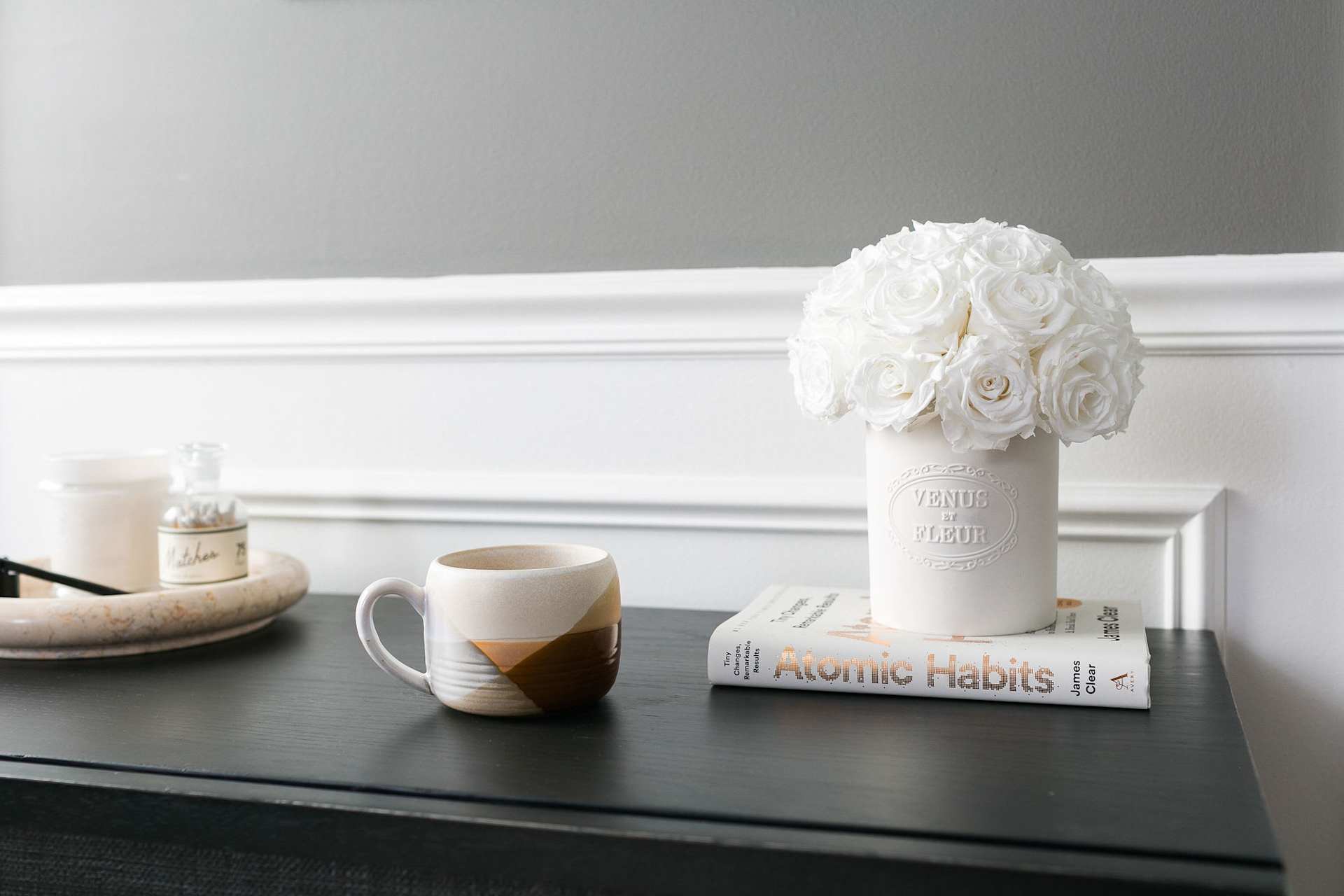 You don’t want a garden in your home, but you definitely want to bring life to your space. Some tasteful green plants (succulents are a personal favorite!) on a shelf will do wonders. Have an empty corner? Pick up a faux plant from Target, Home Goods, or Costco; it’s low maintenance and brings some life to the room!