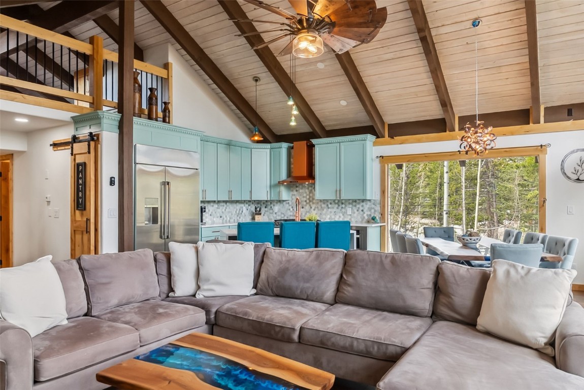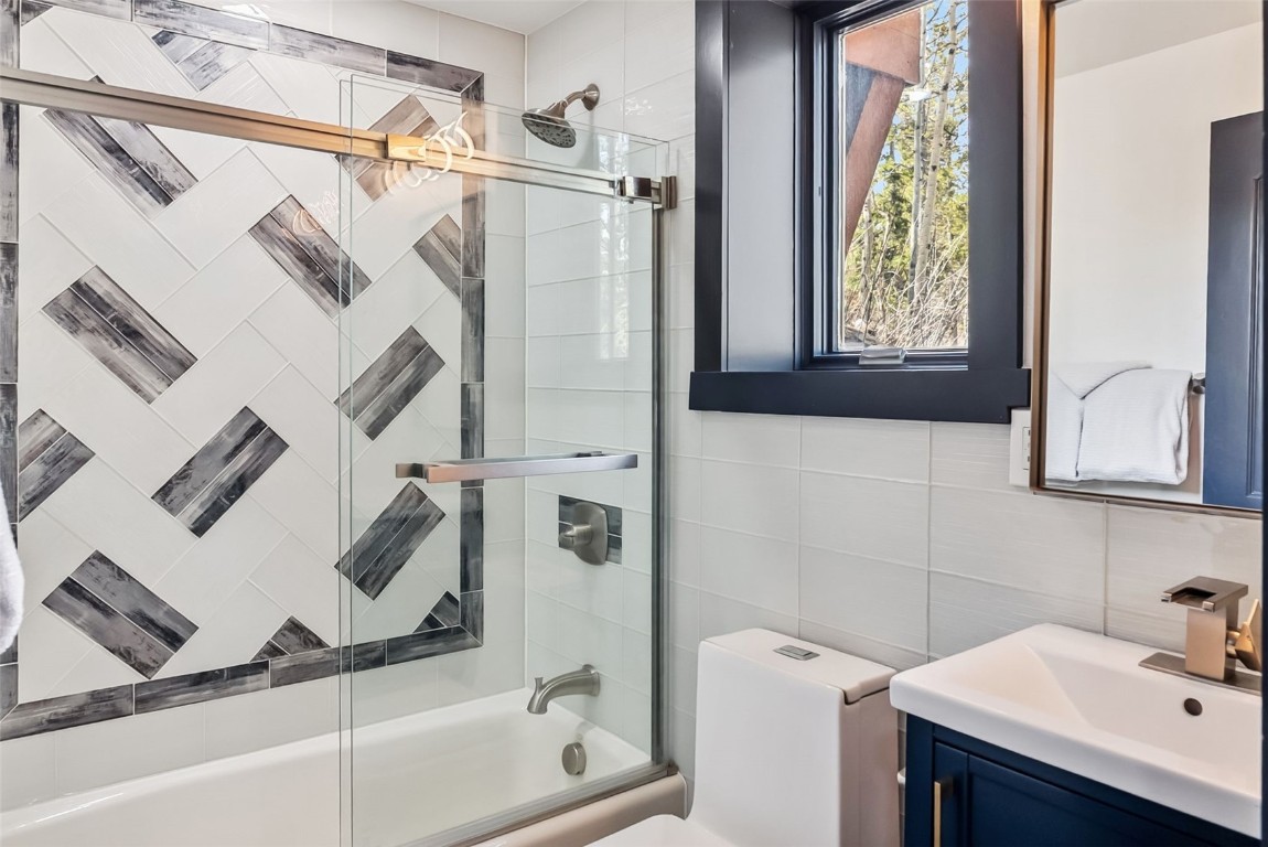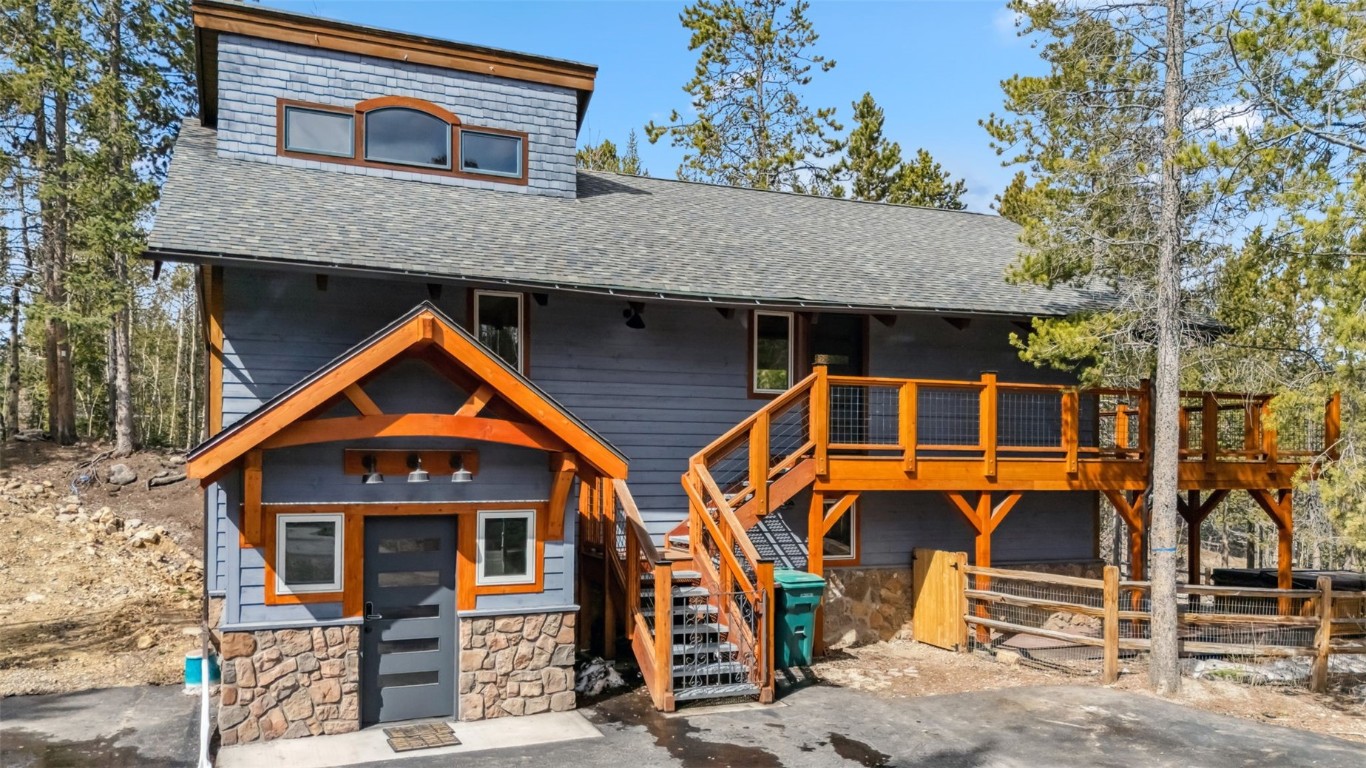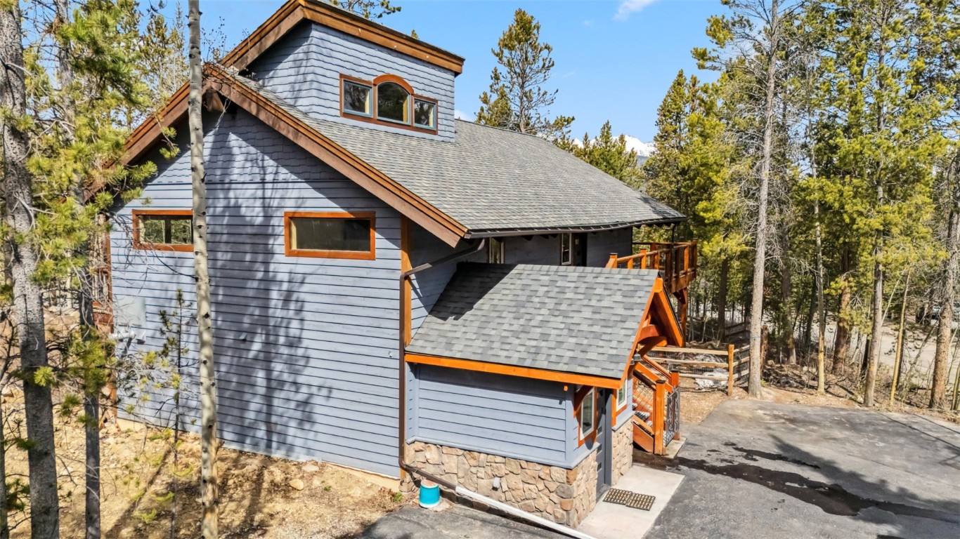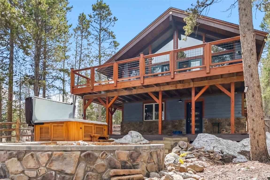 This beautifully reimagined 3-bedroom plus loft, 3.5-bathroom home sits on a private half-acre lot just minutes from downtown Breckenridge. Fully renovated from top to bottom with a $475,000 investment, every space showcases updated finishes, modern touches, and thoughtful upgrades throughout. The open-concept main level is light and welcoming, with vaulted ceilings, large windows, and a gas fireplace. The kitchen and dining areas flow seamlessly for easy entertaining, while the upstairs loft offers flexible space for overflow sleeping, an office, reading nook, or play area. Downstairs, a full bar, theater room, and guest suite with bunk beds create an ideal setup for hosting friends and family. A spacious mudroom and entryway--added during the remodel--provide plenty of storage and function for mountain living. Step outside to enjoy the new hot tub and gas firepit, surrounded by trees for privacy and tranquility. The main-level primary suite includes a spa-like bathroom and a private deck--your personal retreat in the mountains. Two exterior sheds offer extra space for storing gear, toys, and lawn equipment. Whether you're seeking a full-time residence, second home, or investment property, this turnkey mountain retreat delivers an exceptional combination of comfort, quality, and location.