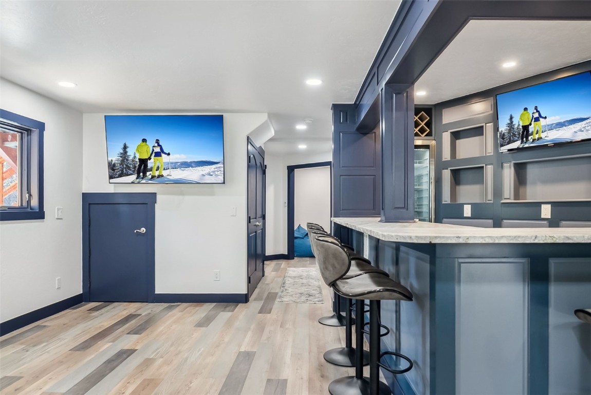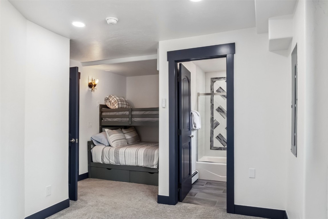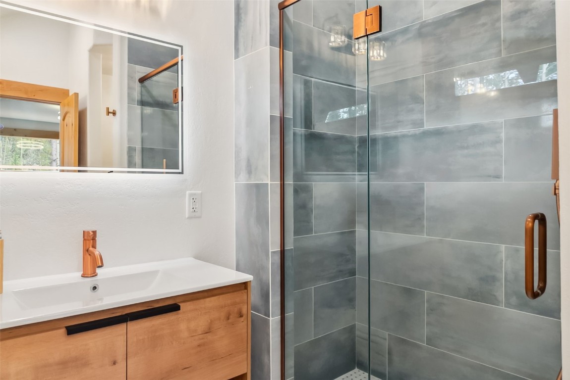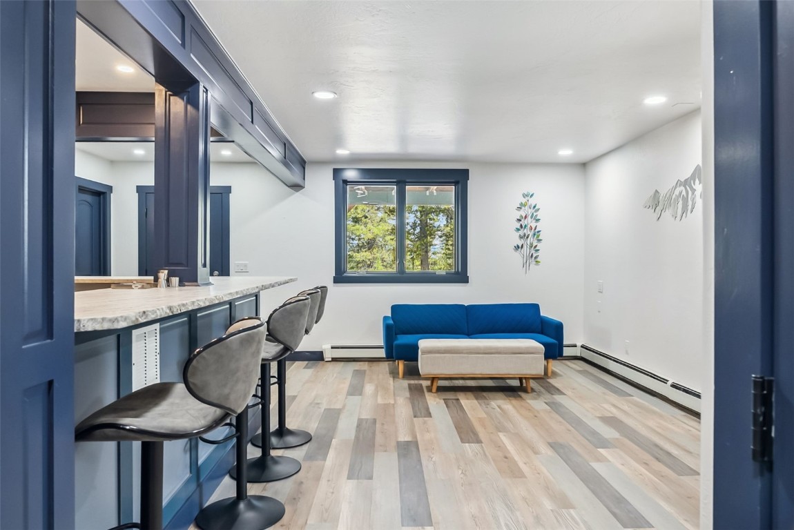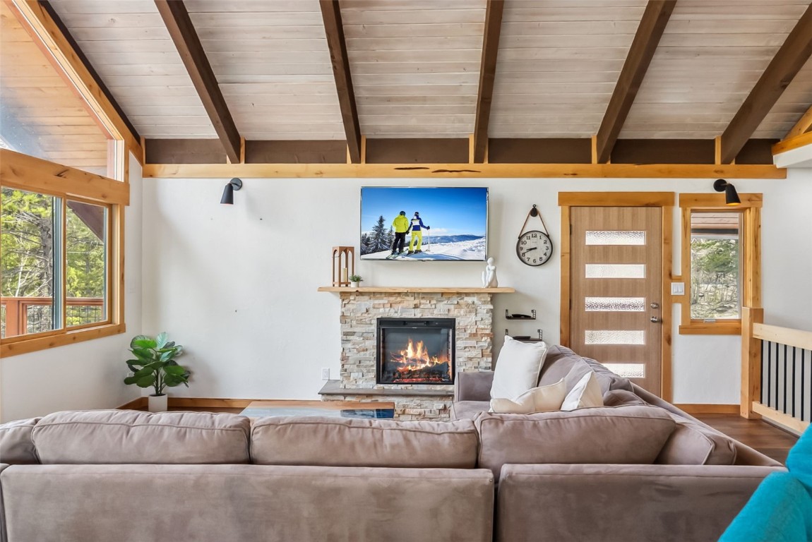 This beautifully reimagined 3-bedroom plus loft, 3.5-bathroom home sits on a private half-acre lot just minutes from downtown Breckenridge. Fully renovated from top to bottom with a $475,000 investment, every space showcases updated finishes, modern touches, and thoughtful upgrades throughout. The open-concept main level is light and welcoming, with vaulted ceilings, large windows, and a gas fireplace. The kitchen and dining areas flow seamlessly for easy entertaining, while the upstairs loft offers flexible space for overflow sleeping, an office, reading nook, or play area. Downstairs, a full bar, theater room, and guest suite with bunk beds create an ideal setup for hosting friends and family. A spacious mudroom and entryway--added during the remodel--provide plenty of storage and function for mountain living. Step outside to enjoy the new hot tub and gas firepit, surrounded by trees for privacy and tranquility. The main-level primary suite includes a spa-like bathroom and a private deck--your personal retreat in the mountains. Two exterior sheds offer extra space for storing gear, toys, and lawn equipment. Whether you're seeking a full-time residence, second home, or investment property, this turnkey mountain retreat delivers an exceptional combination of comfort, quality, and location.