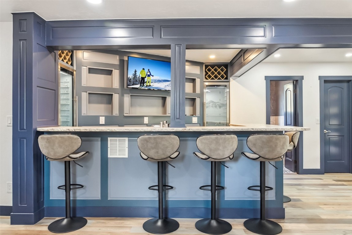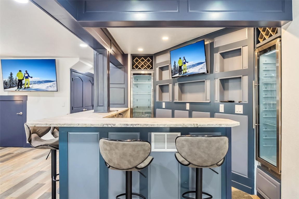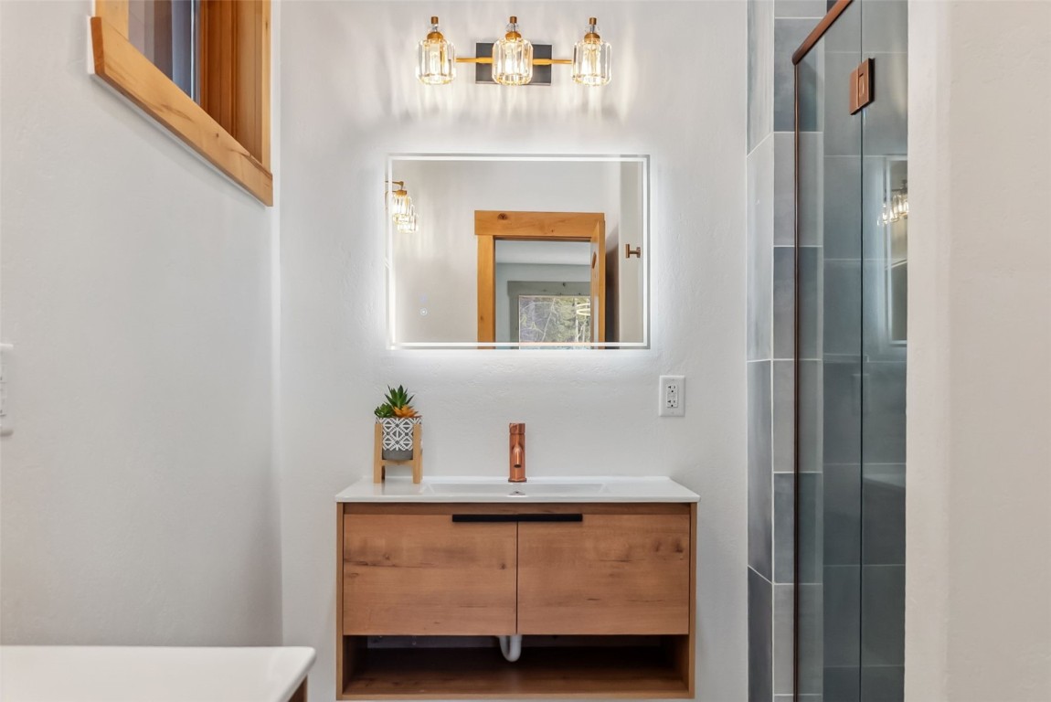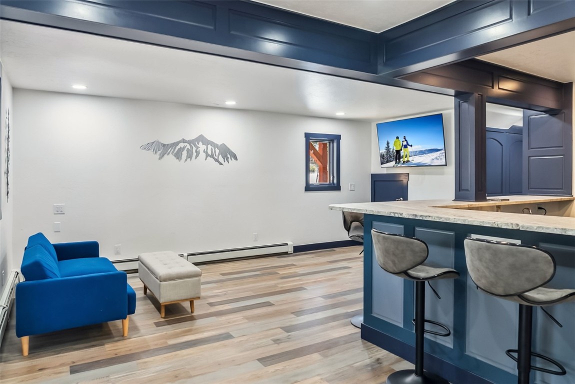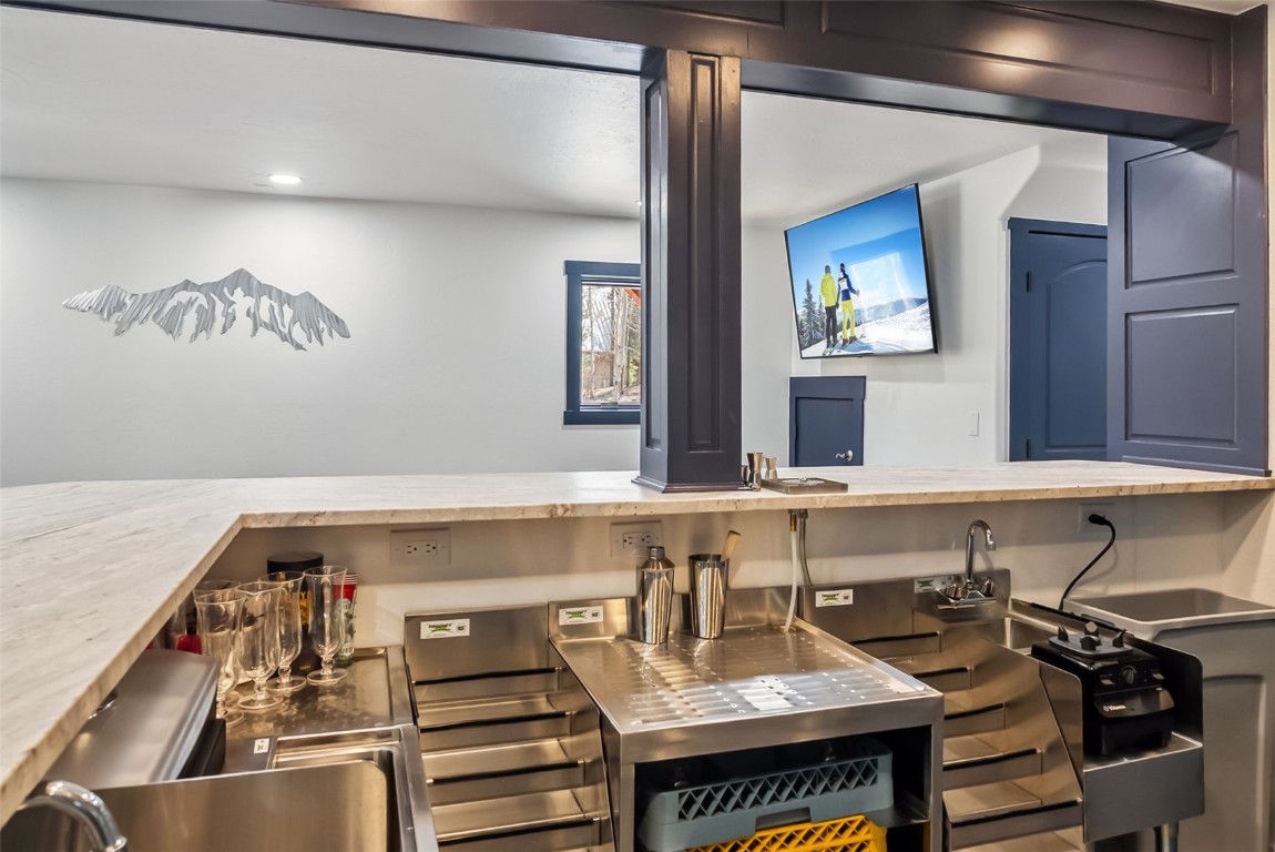 This beautifully reimagined 3-bedroom plus loft, 3.5-bathroom home sits on a private half-acre lot just minutes from downtown Breckenridge. Fully renovated from top to bottom with a $475,000 investment, every space showcases updated finishes, modern touches, and thoughtful upgrades throughout. The open-concept main level is light and welcoming, with vaulted ceilings, large windows, and a gas fireplace. The kitchen and dining areas flow seamlessly for easy entertaining, while the upstairs loft offers flexible space for overflow sleeping, an office, reading nook, or play area. Downstairs, a full bar, theater room, and guest suite with bunk beds create an ideal setup for hosting friends and family. A spacious mudroom and entryway--added during the remodel--provide plenty of storage and function for mountain living. Step outside to enjoy the new hot tub and gas firepit, surrounded by trees for privacy and tranquility. The main-level primary suite includes a spa-like bathroom and a private deck--your personal retreat in the mountains. Two exterior sheds offer extra space for storing gear, toys, and lawn equipment. Whether you're seeking a full-time residence, second home, or investment property, this turnkey mountain retreat delivers an exceptional combination of comfort, quality, and location.