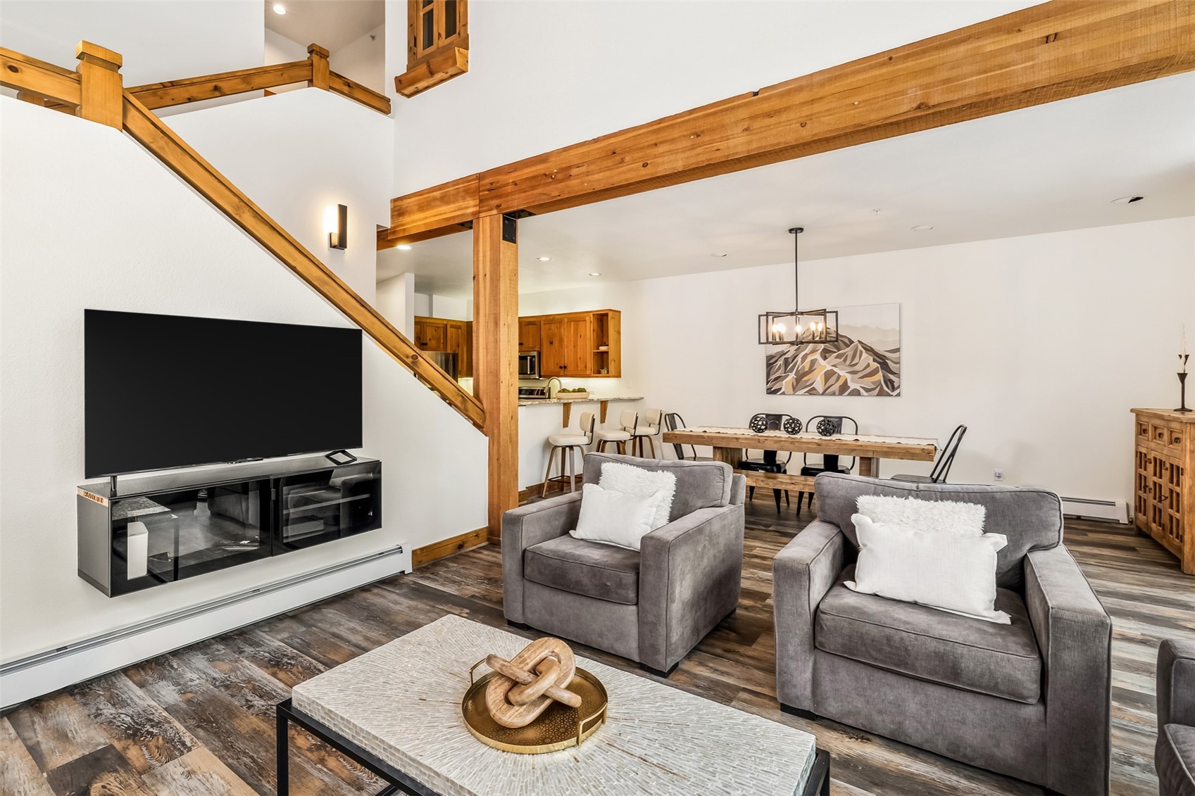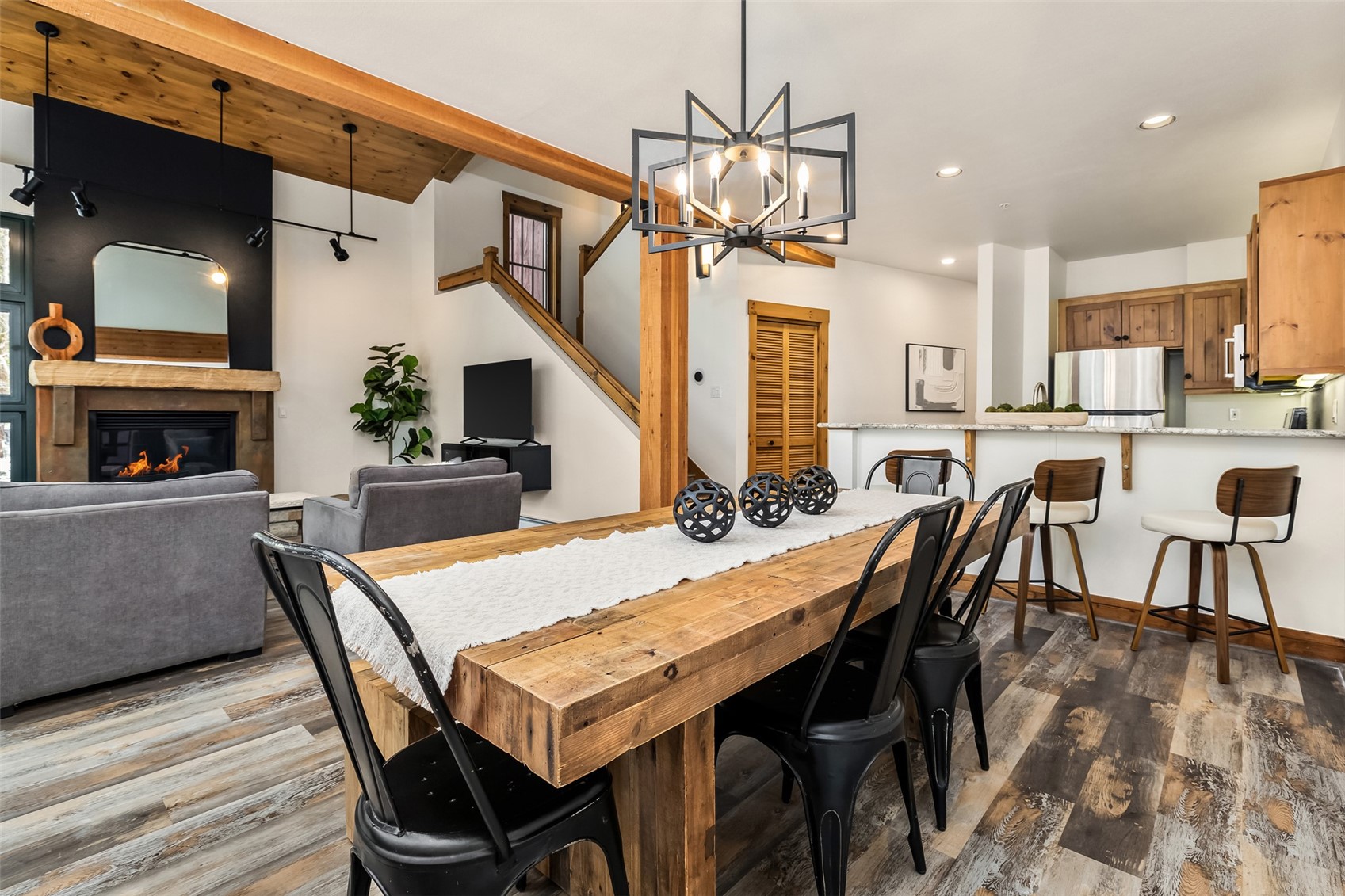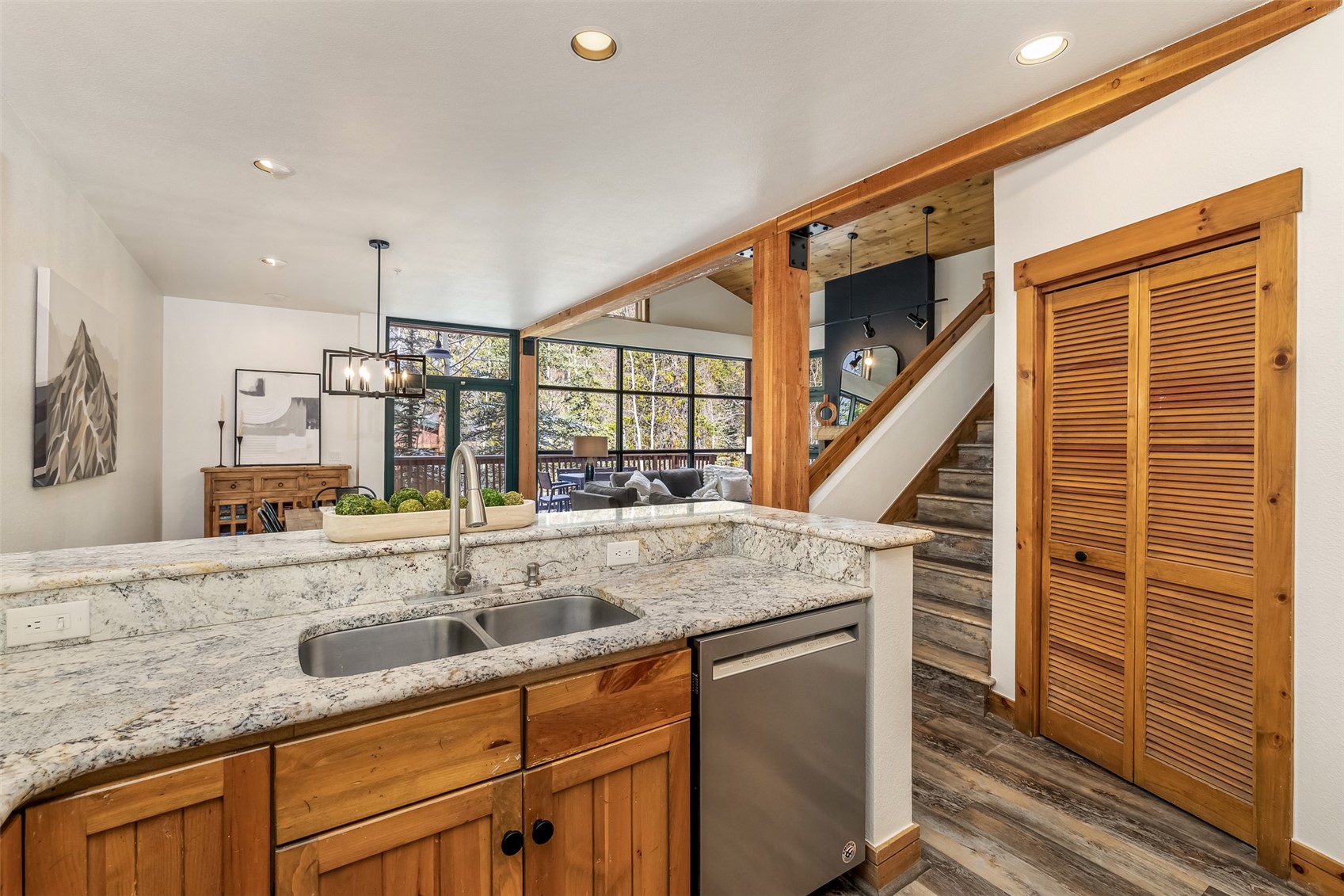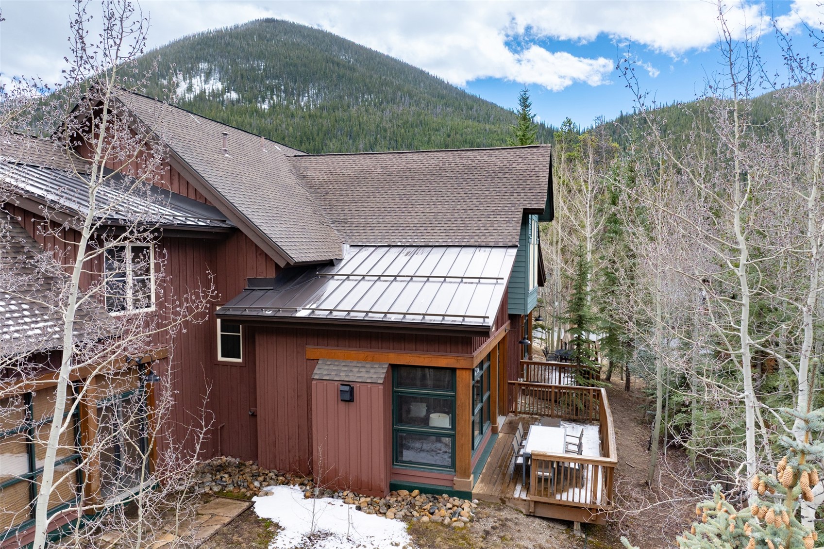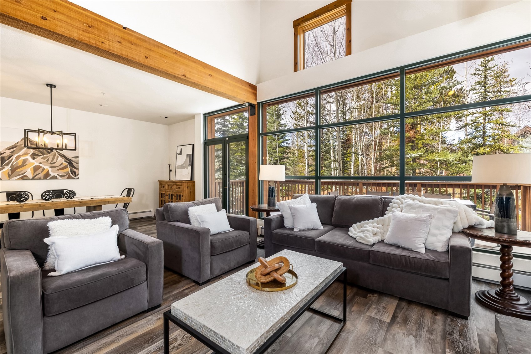 Tucked into the coveted Ski Tip neighborhood, this charming three bedroom townhome offers a rare blend of privacy, convenience, and classic mountain style. Surrounded by mature pine and aspen trees, you're only moments from everything Keystone has to offer. Inside, vaulted ceilings and a wall of windows fill the living space with natural light and bring the outdoors in. A gas fireplace anchors the room, creating an inviting place to unwind after a day on the mountain. The kitchen features granite countertops and opens easily to the dining and living areas, ideal for relaxed entertaining. Step outside to your private deck to enjoy the quiet surroundings and fresh mountain air. Offered fully furnished, this home is ready for immediate enjoyment. Recent updates include fresh paint, new carpet and new light fixtures. The location is hard to beat--just steps to the Keystone shuttle and a short walk or bike ride along scenic paths to River Run Village for skiing, dining, shopping, and year-round events. The historic Ski Tip Lodge, one of Summit County's most beloved dining experiences, is on property and a quick stroll away. Owners and guests also enjoy access to on-site hot tubs and grilling areas, along with the River Run pool and spa. With a one-car garage, additional storage, and a setting that feels both connected and serene, this is an opportunity to own in one of Keystone's most desirable neighborhoods--whether as a personal retreat, an investment, or both. Short term rental licenses are available.