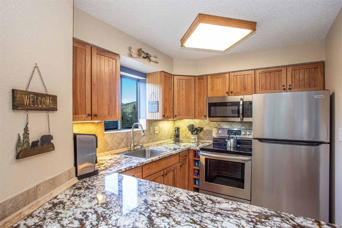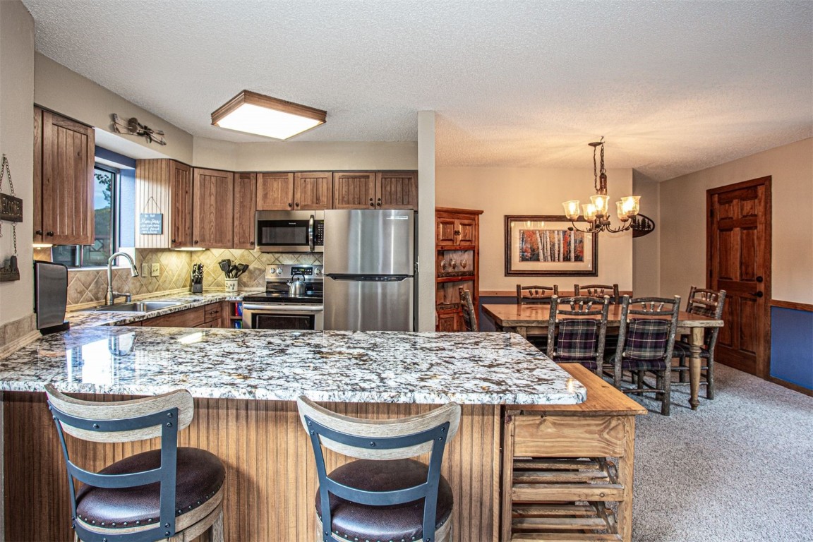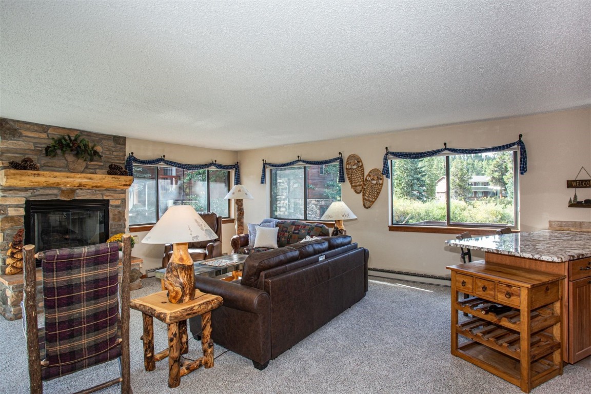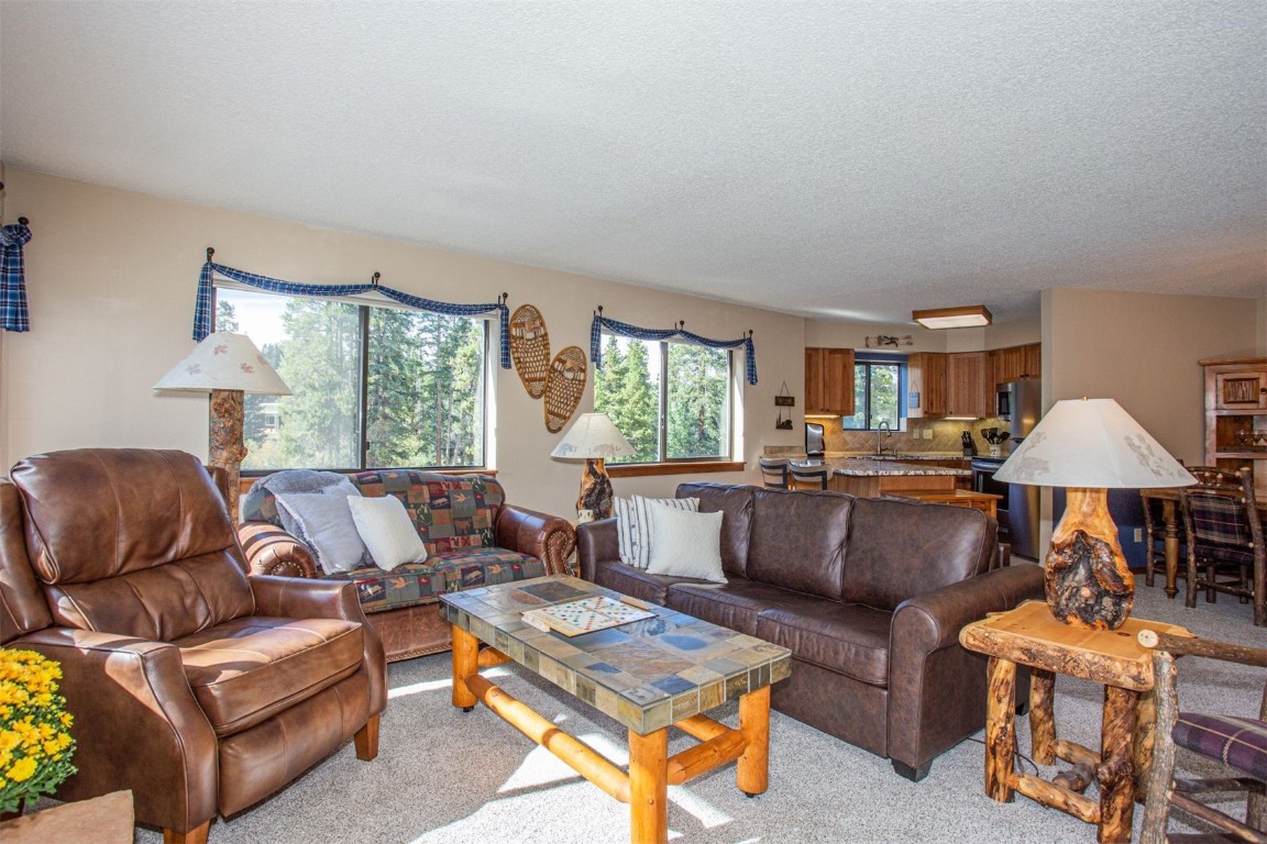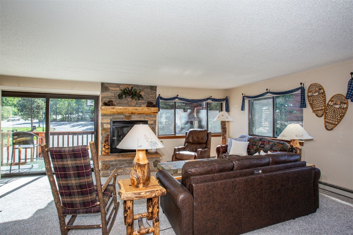 This well maintained and turnkey two-bedroom condo located in Zone 1 is perfect for short-term rentals. Recent upgrades include new carpet and Pella sliding glass door specifically a dual glass tempered Low E, advanced Low E high altitude Argon glass for blocking the afternoon sun. You'll be just a short walk from the Snowflake Lift and only two blocks from Main Street's restaurants, shops, and the Riverwalk Center for concerts. Ski right to your door via the Four O'Clock Run, and enjoy the onsite hot tub and Upper Village pool and hot tubs is close by. The condo features two spacious decks, one faces west with stunning mountain views of Peak 8. As a corner unit, it's filled with natural light from extra windows, creating a bright and inviting atmosphere. Fully furnished, with most furniture recently updated, the condo offers cozy comfort with a gas fireplace, perfect after a day on the slopes. With easy access to shopping, dining, and numerous hiking and biking trails, you'll enjoy the ultimate convenience of leaving the car at home. The monthly HOA fee includes cable TV and internet service via the Pine Ridge WiFi. Owners have a private ski locker for their gear and on-site amenities like a fully equipped fitness room and meeting space.