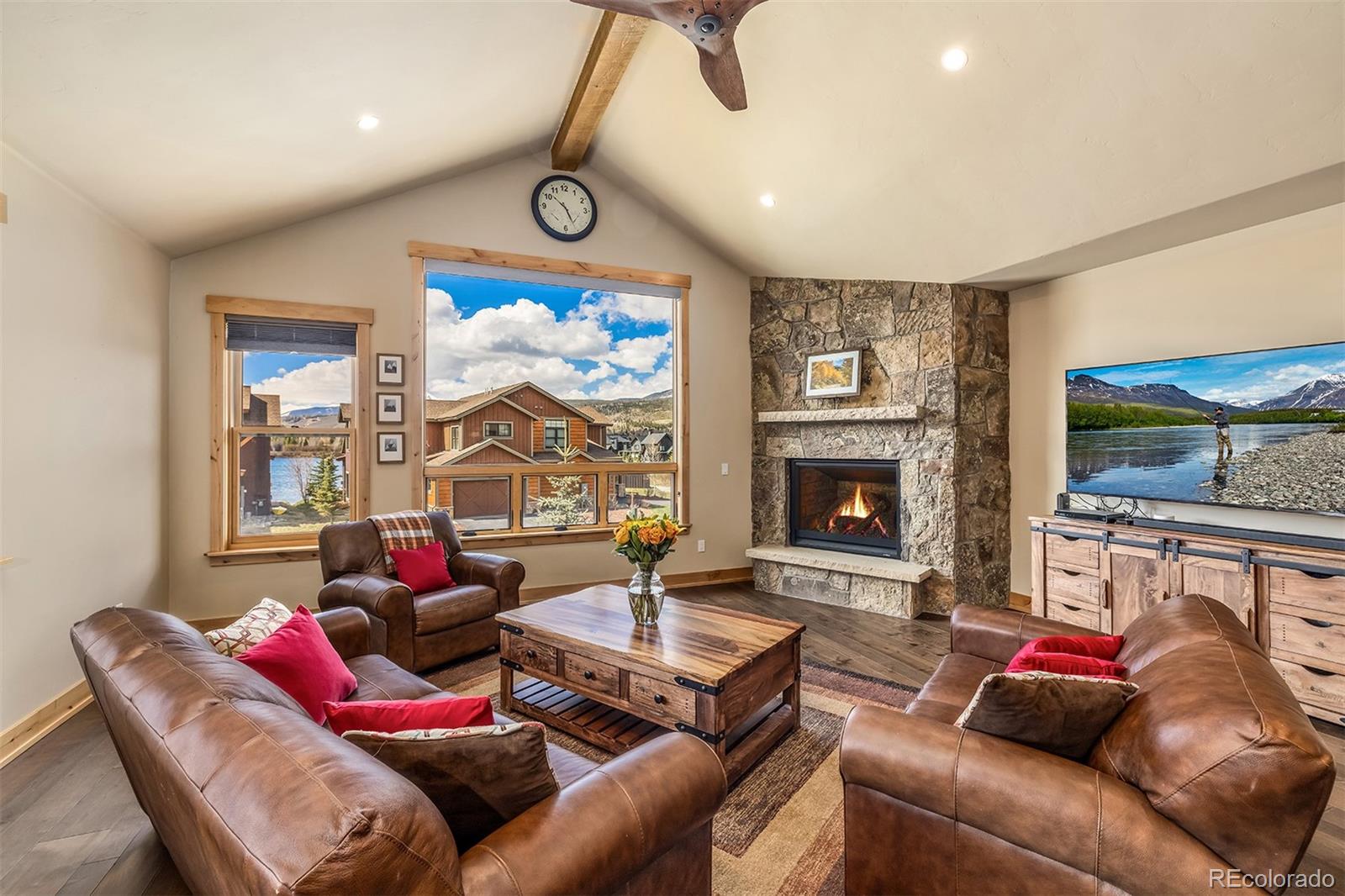 Welcome to Angler Mountain Ranch and this pristine townhome at the base of the neighborhood. This 3-bedroom, 3-bath property sits across from the private pond of Angler Mountain Ranch and Silver Trout Developments. Mountain contemporary finishes and bold wood accents create a warm retreat feel, enhanced by brand-new carpet fully replaced in January 2026. The open living, dining, and kitchen layout is ideal for entertaining, while south-facing windows bring in natural afternoon light. A lower-level second living area offers a quiet movie escape, and the private hot tub is perfect after a day on the slopes. The spacious 2-car garage provides ample storage for mountain gear. Enjoy the HOA-stocked pond by kayak or canoe, or relax at the lakeside clubhouse with owner watercraft storage. Updated photos with new carpet will be available Friday, February 20th. Whether you're chasing ski days or summer lake time, 468 Fly Line is an ideal base for your Rocky Mountain adventures.