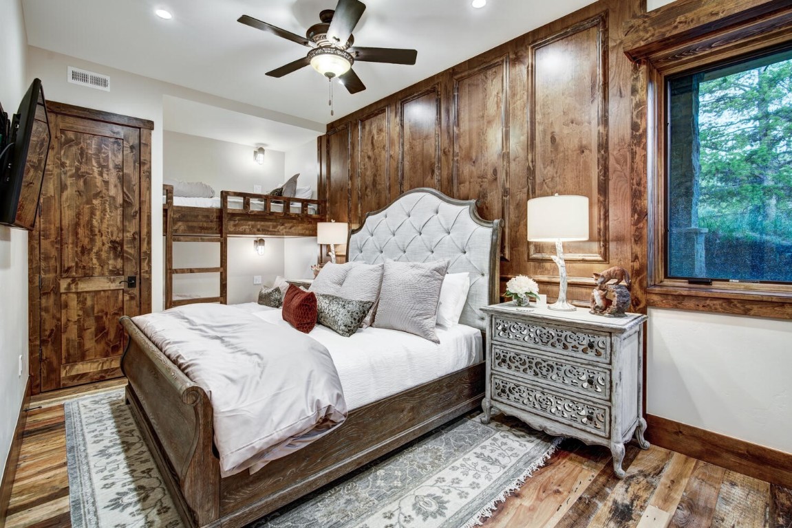An extraordinary opportunity to own an ultra-luxury legacy home at a fraction of the cost. This 25% equity interest offers an exquisite newly constructed Breckenridge retreat, ready for the most discriminating buyer. Grand Vista Lodge seamlessly blends Old World charm with modern sophistication. Every detail has been thoughtfully curated and artistically designed, from the stunning great room featuring timber-beam accents and panoramic golf course and Ten Mile Range views, to the gourmet kitchen and formal dining area with full-wall patio-door system. There's room for everyone with three luxury retreat bedroom suites, a themed bunk room, and lower level rec room. Charming and artistic details include a multi-story Narnia-themed play space with a climbing wall, secret slide, and an 1880s antique wardrobe, sparking imagination and adventure. Cleverly designed for shared ownership, the home features 4 walk-in primary closets, 4 separate cabinets/closets in kitchen and mudroom and 4 6'x10' garage storage areas. Additional amenities include 4 interior fireplaces, a 3-stop elevator, state-of-the-art smart home features throughout and extensive outdoor living with multiple decks, a covered back patio with fireplace, a sunken salt-water 9-person hot tub, professional landscaping, and open space on three sides of the home. Perched gracefully above the Elk 4 Fairway of the Breckenridge Golf Course, the home offers all-day sun and breathtaking views. Its prime location ensures effortless access to Tiger Road and all the attractions of Breckenridge. And the innovative shared calendar grants one full summer month, three half-month winter periods and a week in October for each owner. Professional property management ensures a seamless and worry-free ownership experience and optional low-interest financing at 4% has been secured and is available for qualified buyers. Embrace the opportunity for immediate occupancy and begin creating cherished Breckenridge memories without delay.